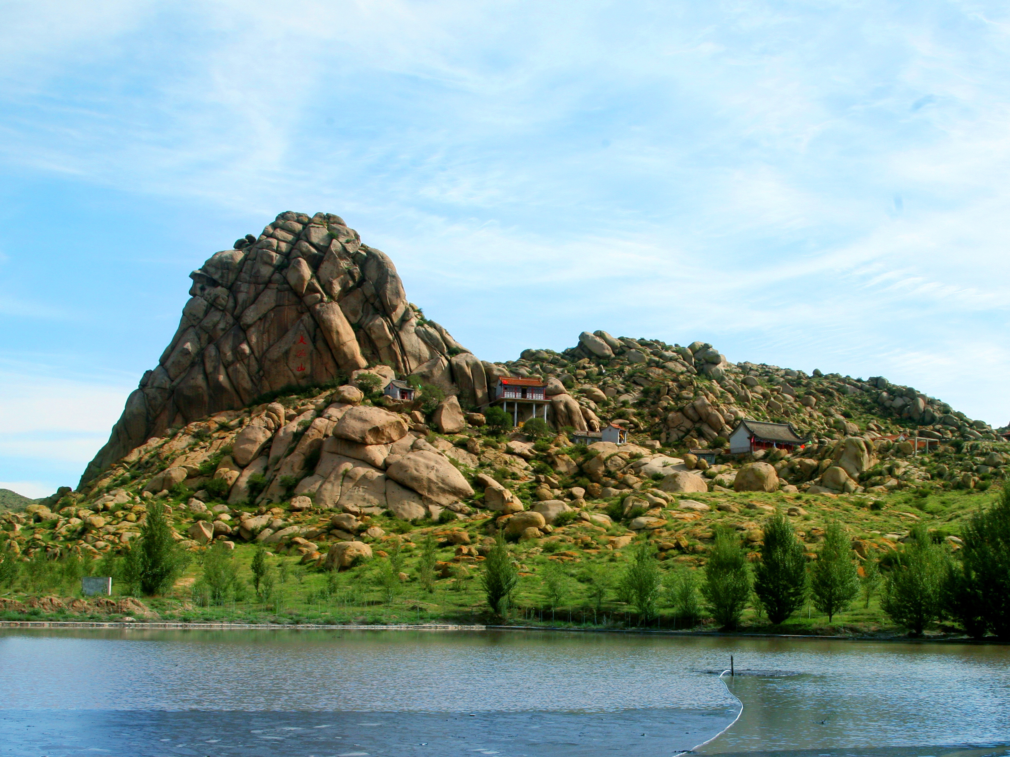 大仙山--北国风光,千里冰封,望仙山,白雪皑皑,美不胜收。距固阳县城西北12公里,有一座长5公里、宽1公里的石林公园。主峰酷似一座山神,矗立在群山之间,从山脚只有一条弯延曲折的险道可直通山顶,其余均为绝壁悬崖。山上奇峰突兀,怪石磷峋,八戒小憩,巨鲸吞食、金鸡脱冠、仙人床、仙人台、飞来石等各种大小不同、造型逼真、形象生动的山石分布在群山之中,特别是有一巨石,上面刻满了蒙、藏、梵等文字,神秘至极。山间百鸟鸣叫,杂草丛生,又有山榆倒挂,野花点缀,人游其中,如入仙境。这就是富有传奇色彩的大仙山。