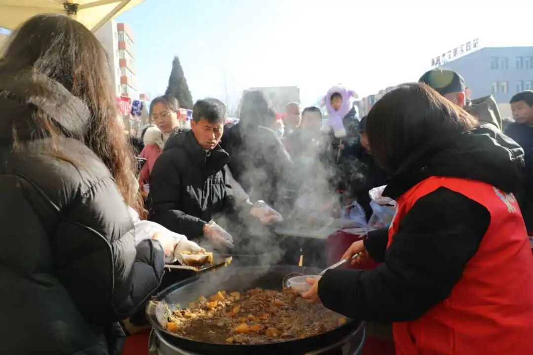热腾腾的猪肉烩酸菜、金黄酥脆的炸油饼、手擀现包的冬至饺子、暖胃养生的黄芪茶……12月21日上午,昆都仑区市府东路街道阿尔丁1号街坊广场上热气蒸腾、乡音缭绕,由固阳县银号镇与昆区市府东路街道等单位共同发起的“畅享银号·吃点好的——走进社区、品鉴乡味暨市府东路街道第二届年货展”活动在这里拉开帷幕。