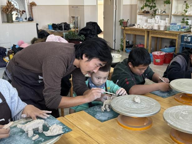 南关社区则将非遗传承与心理关怀融入假期服务,打造特色亲子课堂。“巧手塑陶泥,童心传非遗”陶泥手工课堂上,亲子家庭共同参与“陶马”创作,在揉、捏、搓、压的指尖互动中感受传统技艺温度,传承生肖文化;“以画传心声 微风伴童行”心理课堂通过绘画接力、潜能实验、翅膀徽章DIY等沉浸式体验,为青少年提供情绪释放的安全空间,引导他们发掘自身潜能、缓解成长压力。此外,社区联合相关部门开办的“暖冬筑梦 向阳生长”困境儿童关爱服务寒假训练营,还通过课业辅导、非遗体验、户外拓展等课程,为困境儿童点亮希望之光。