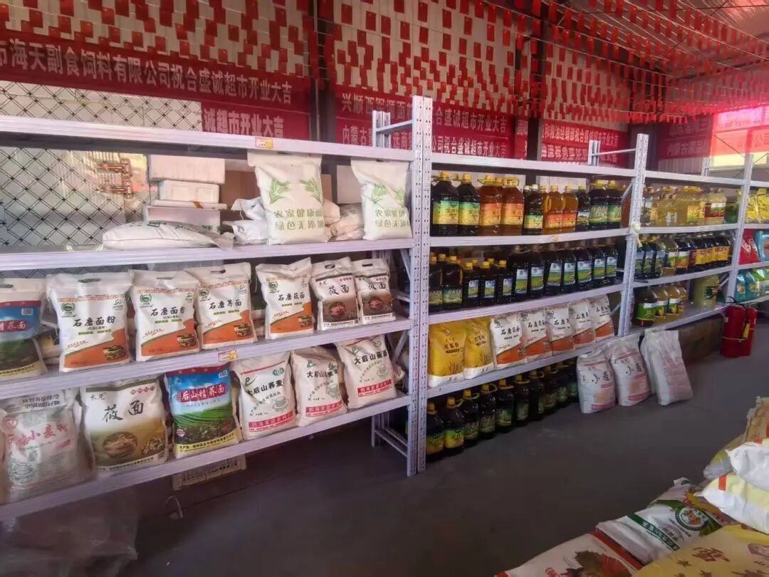 就在西斗铺镇红泥井村中国供销合作社合盛诚仓储超市里头,咱照着老供销社的样,铺开一条“时光货架”。