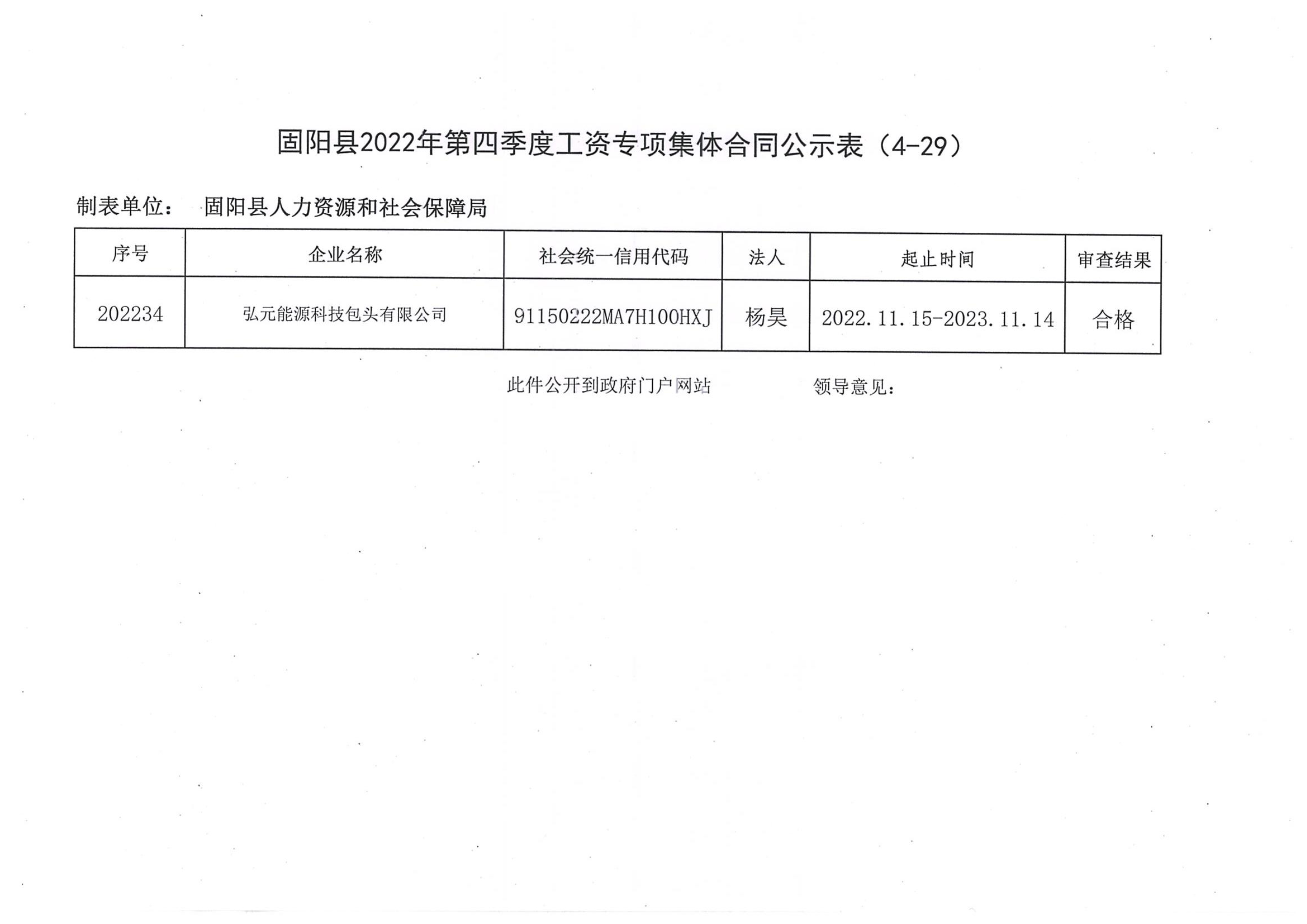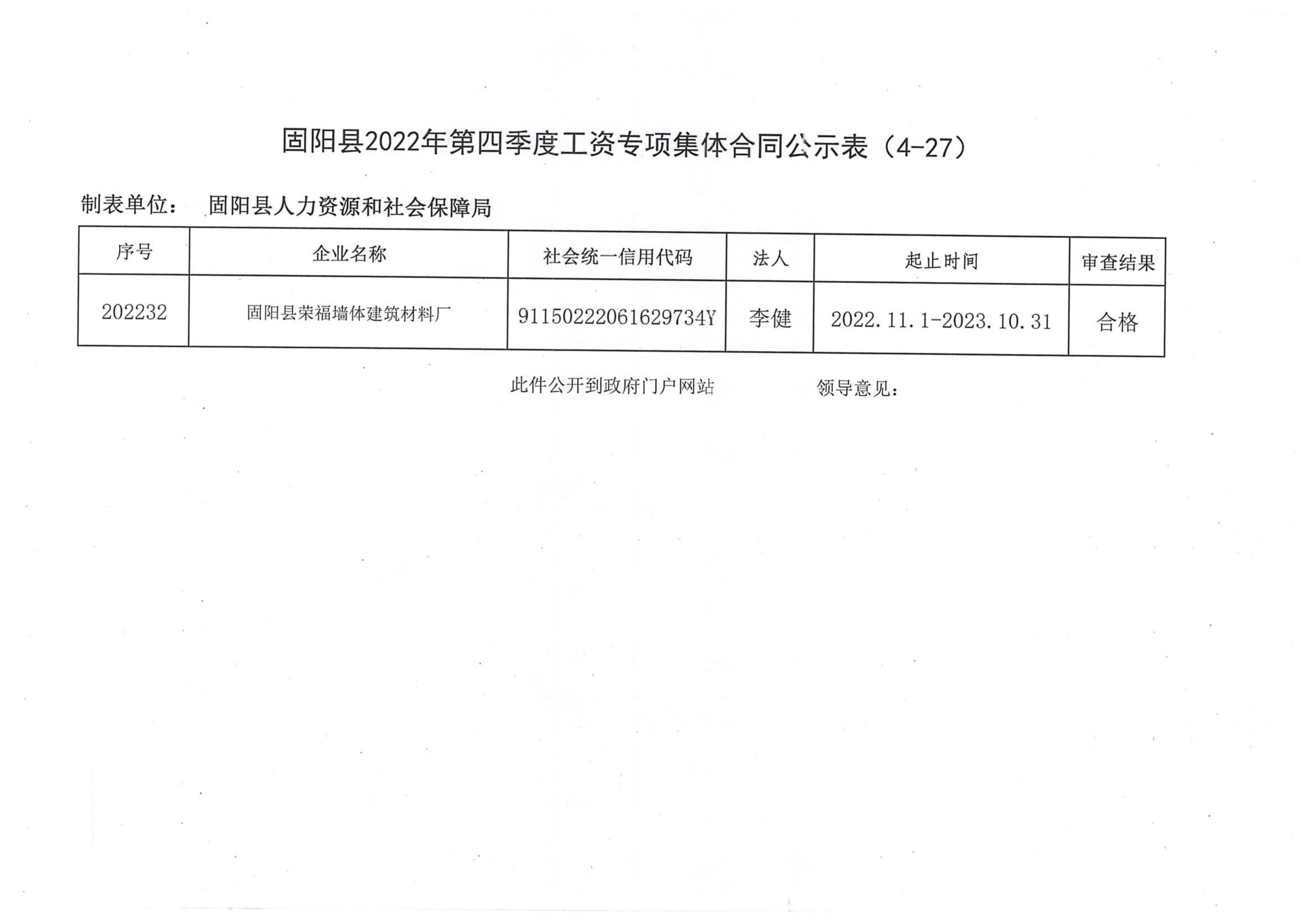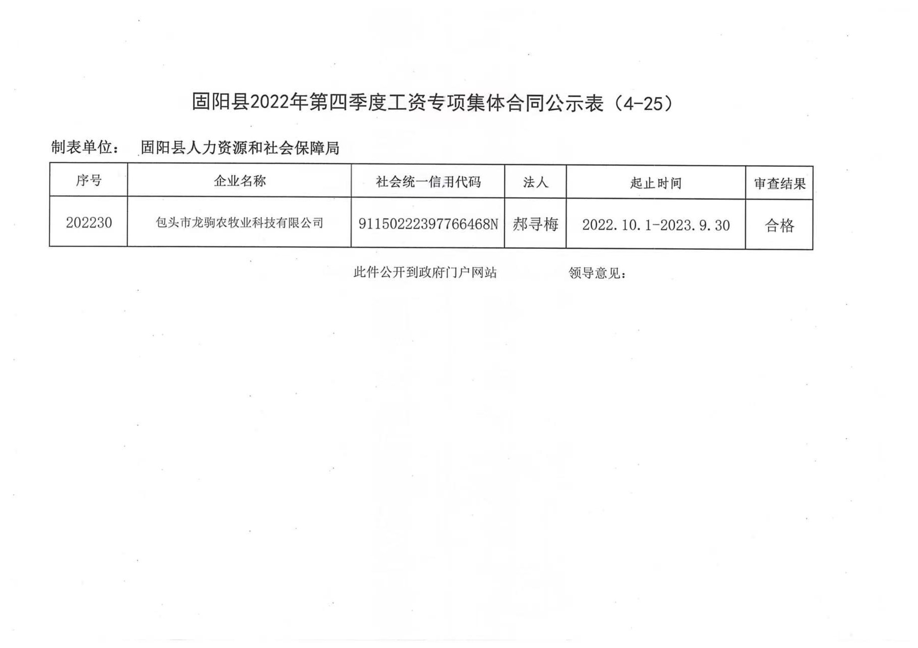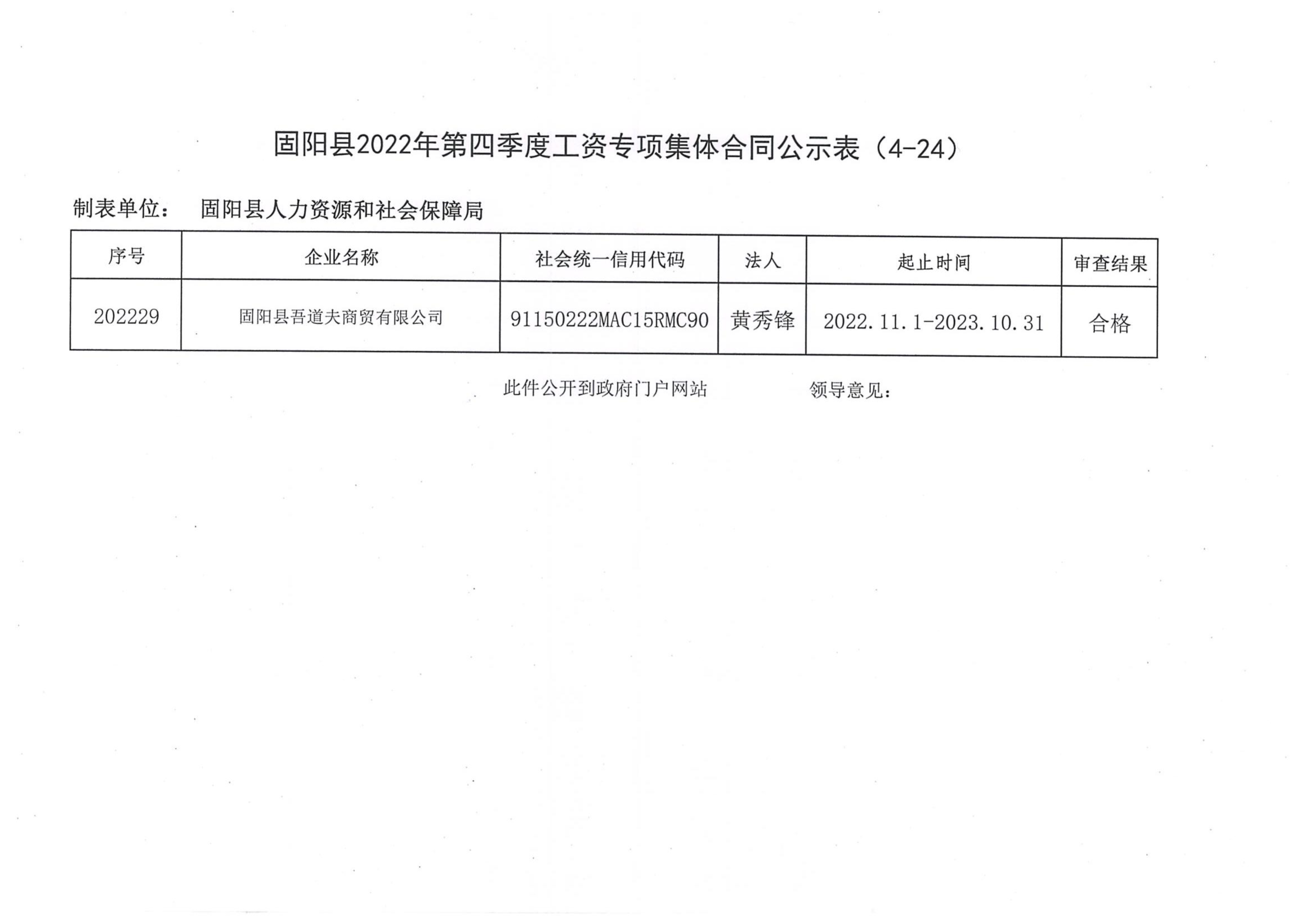 固阳县2022年第四季度工资专项集体合同公示表(4-24)—(4-31)