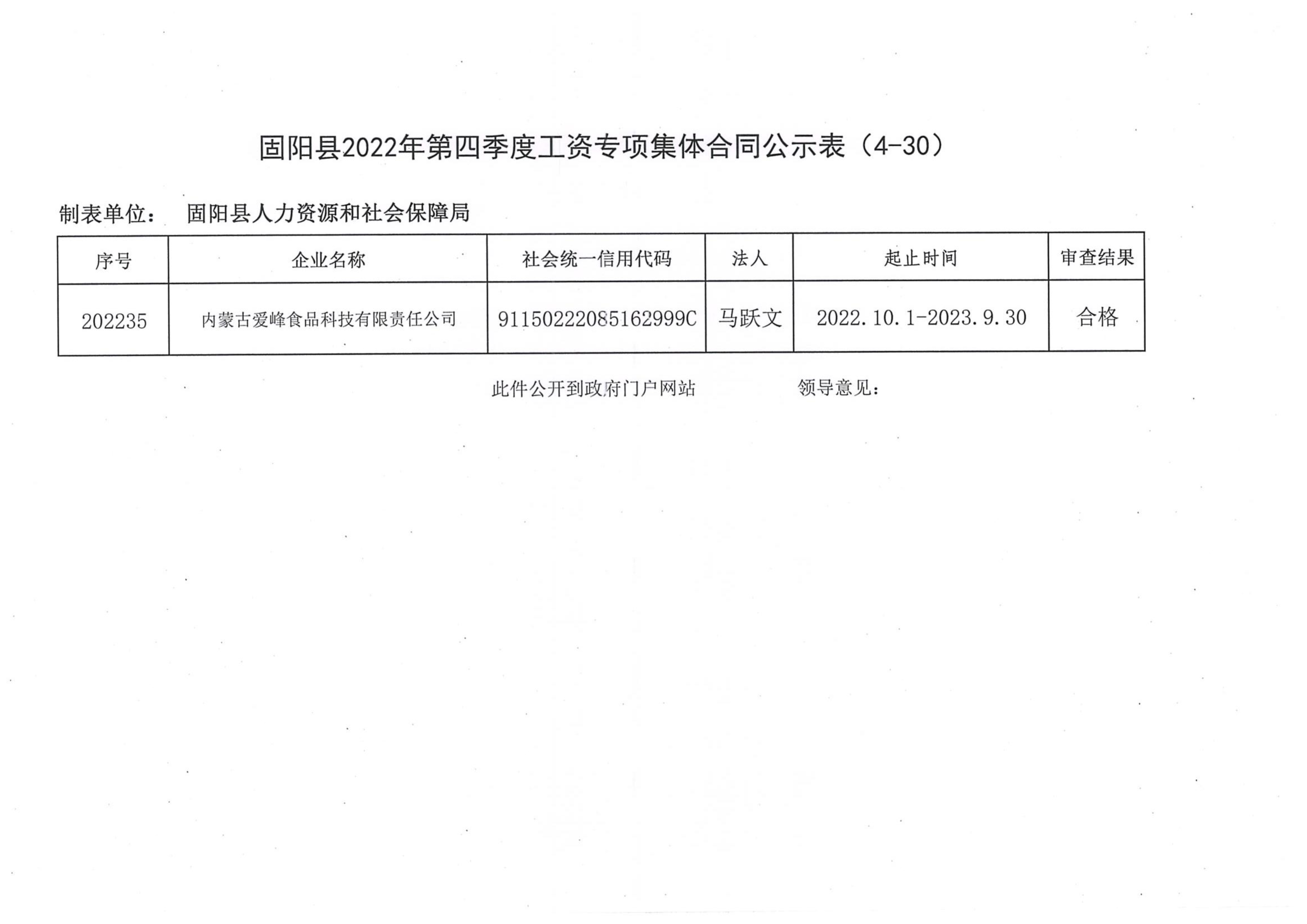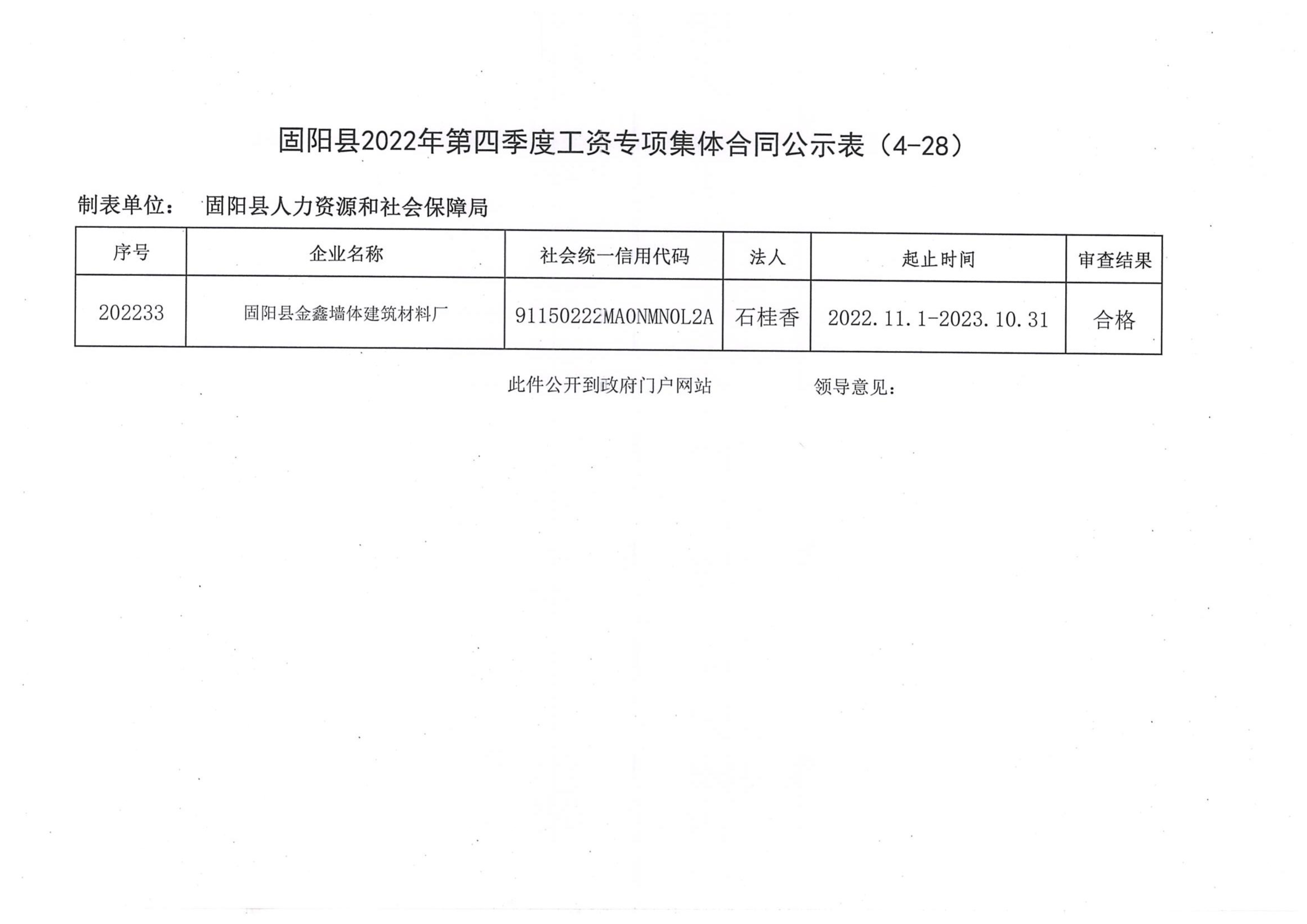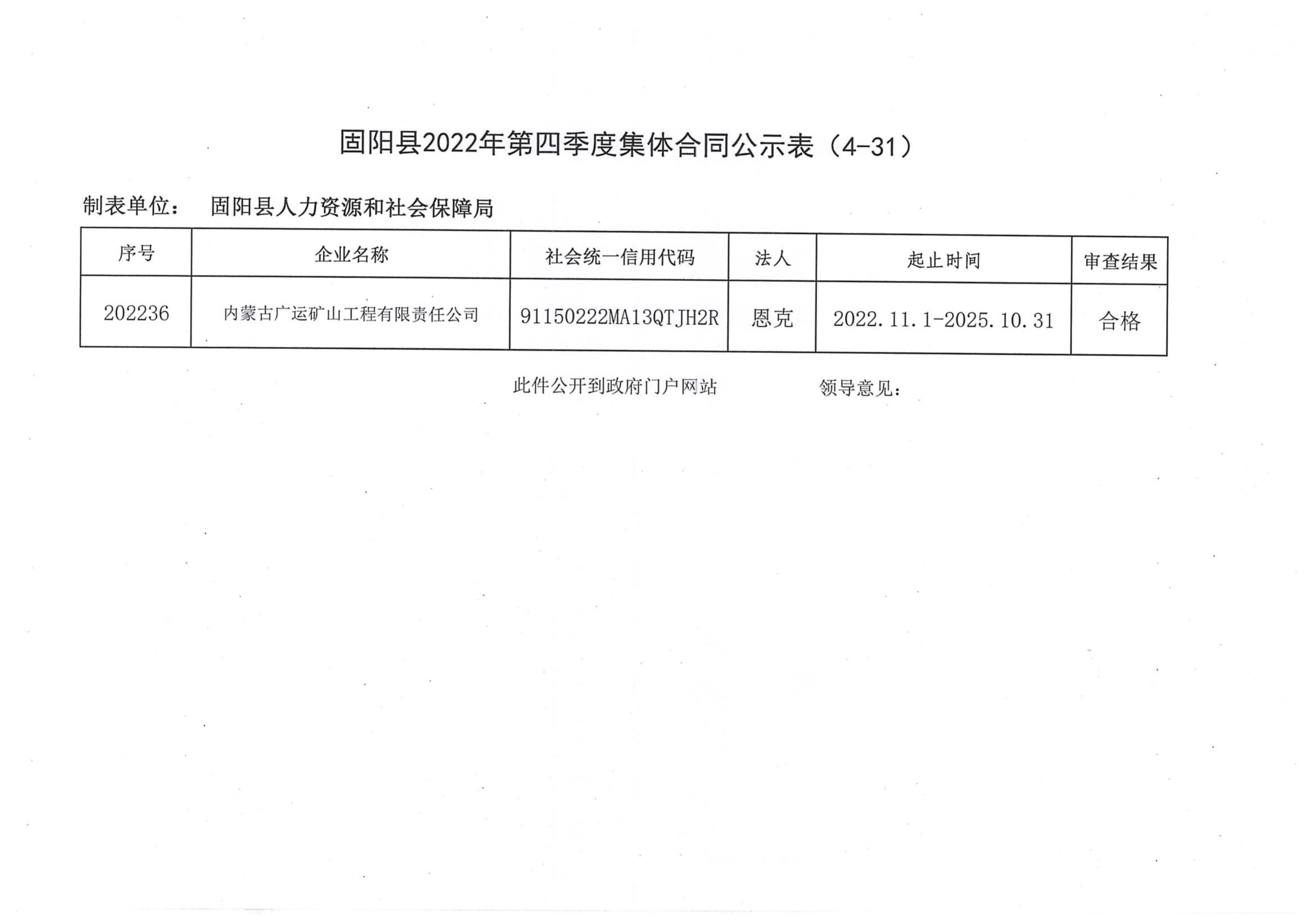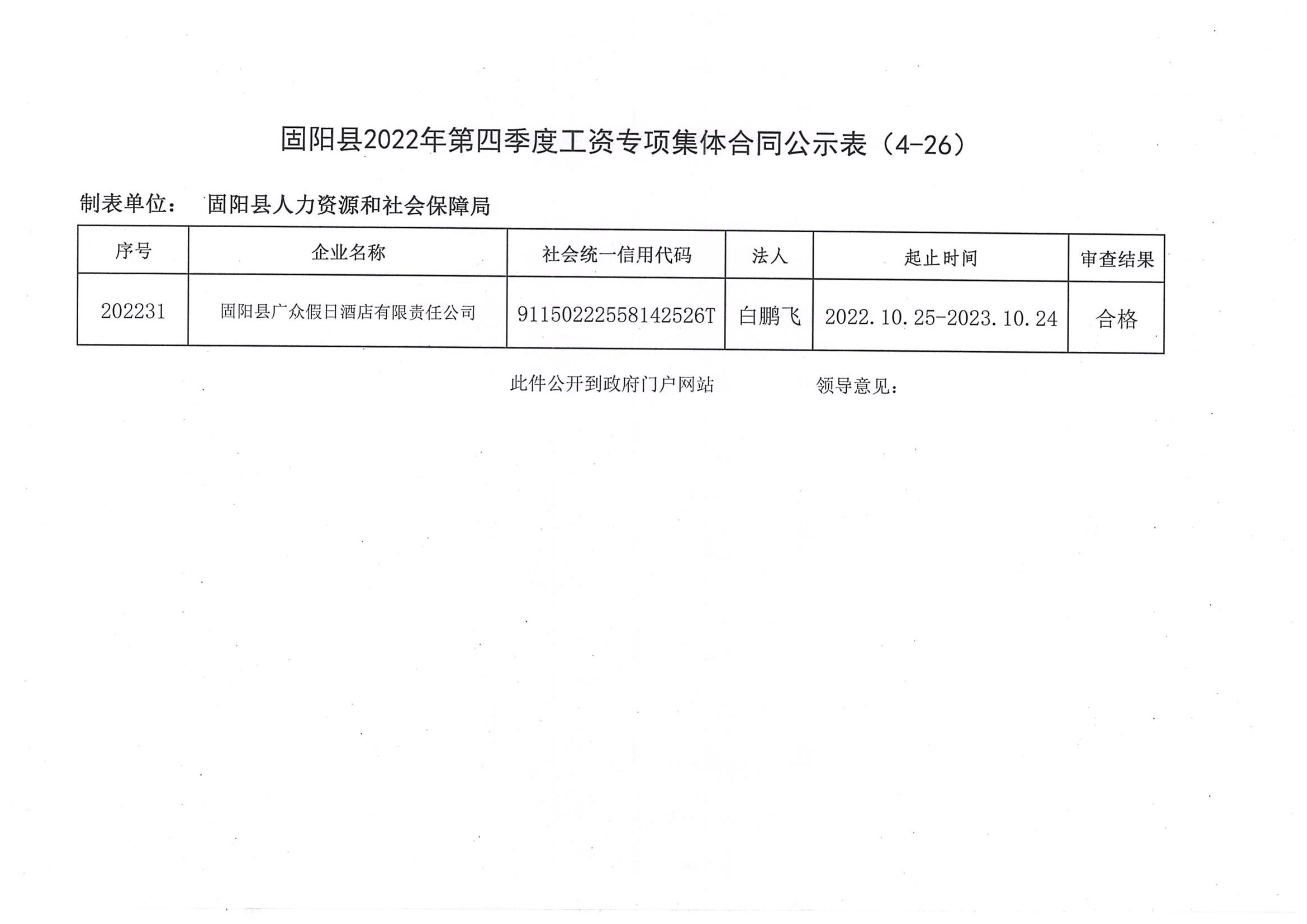 固阳县2022年第四季度工资专项集体合同公示表(4-24)—(4-31)