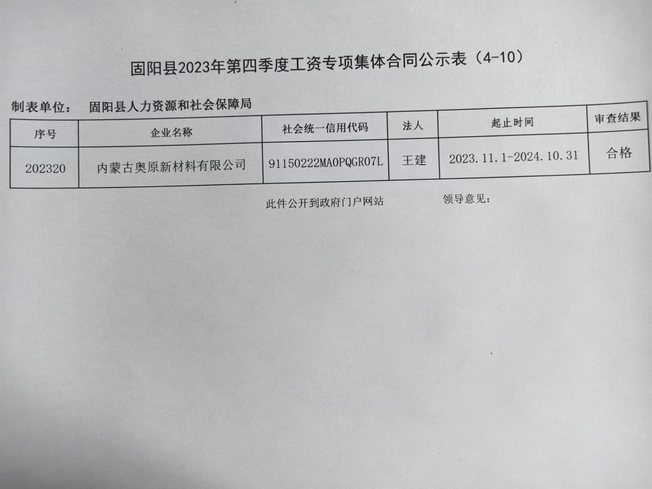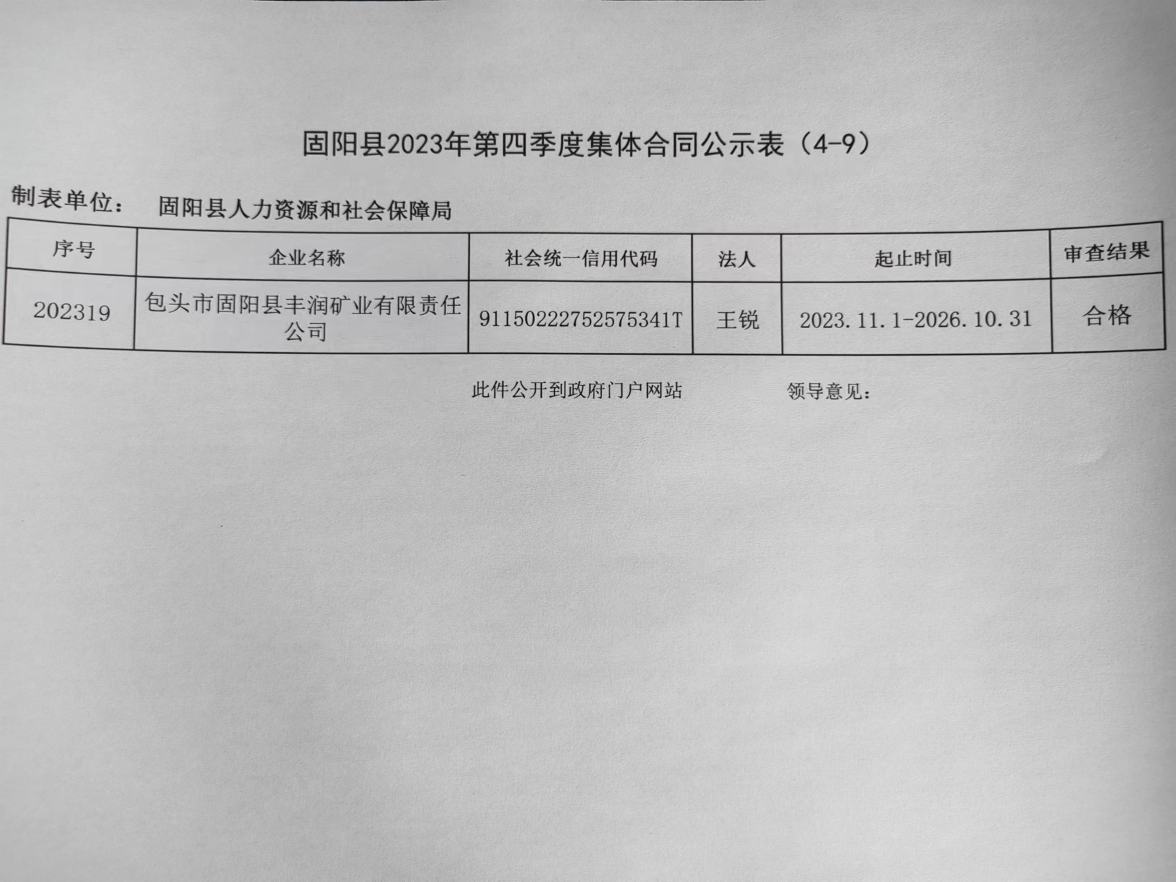 固阳县2023年第四季度集体合同公示表(4-9)—(4-10)