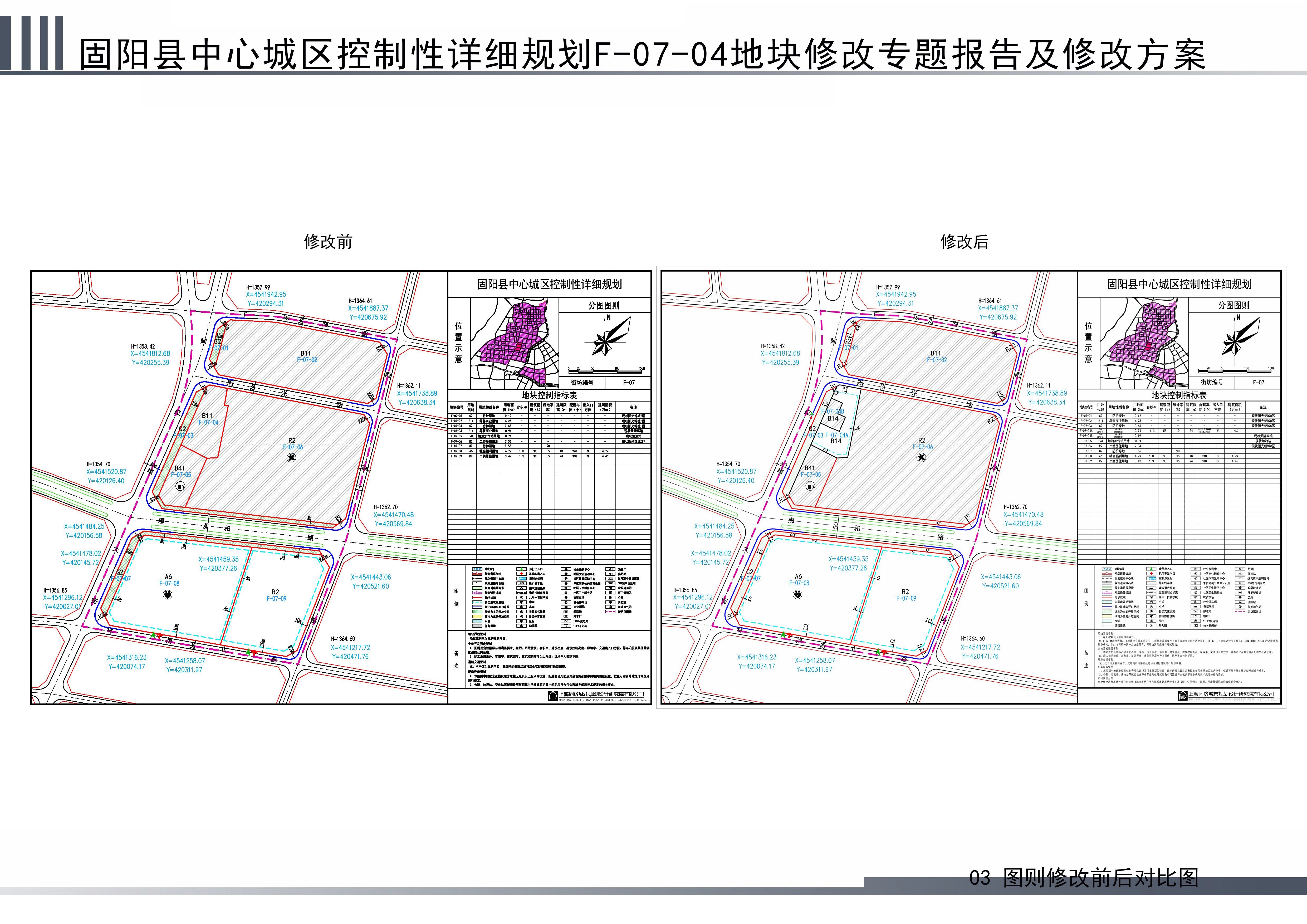 附图:1.固阳县中心城区控制性详细规划F-07-04地块-修改前后对比图