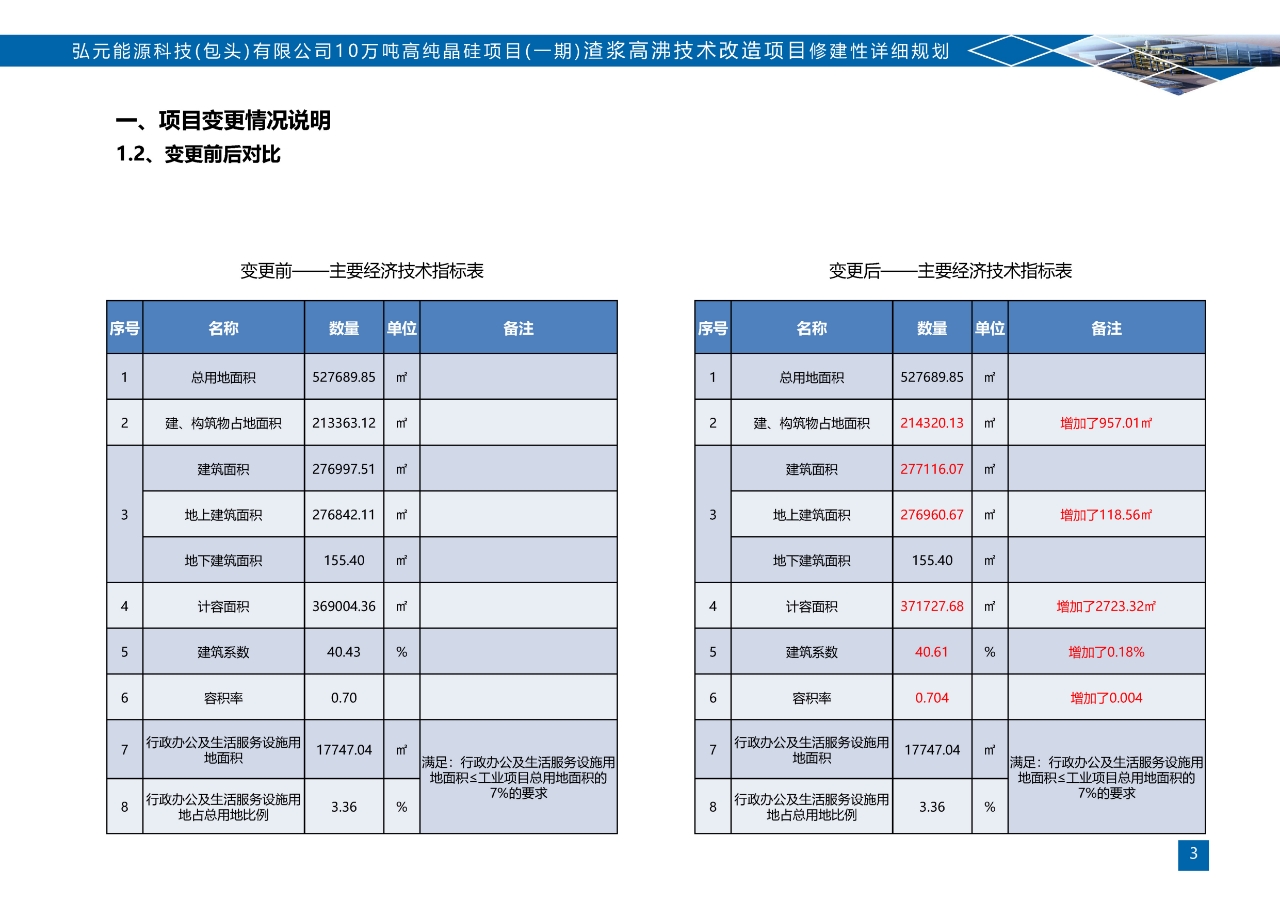 2.弘元能源科技(包头)有限公司10万吨高纯晶硅项目(渣浆高沸技术改造项目)变更前后主要经济技术指标