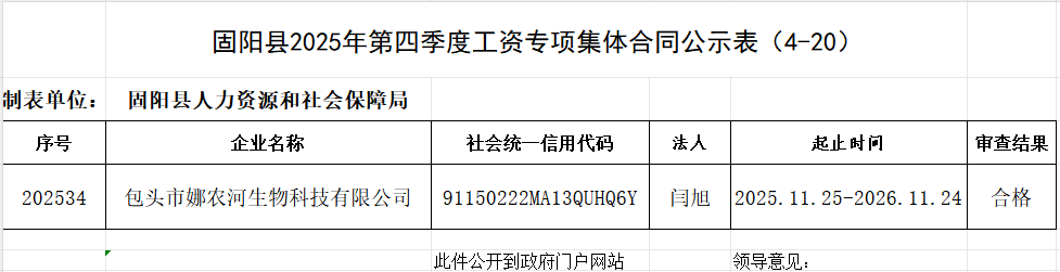 固阳县2025年第四季度工资专项集体合同公示表(4-20)