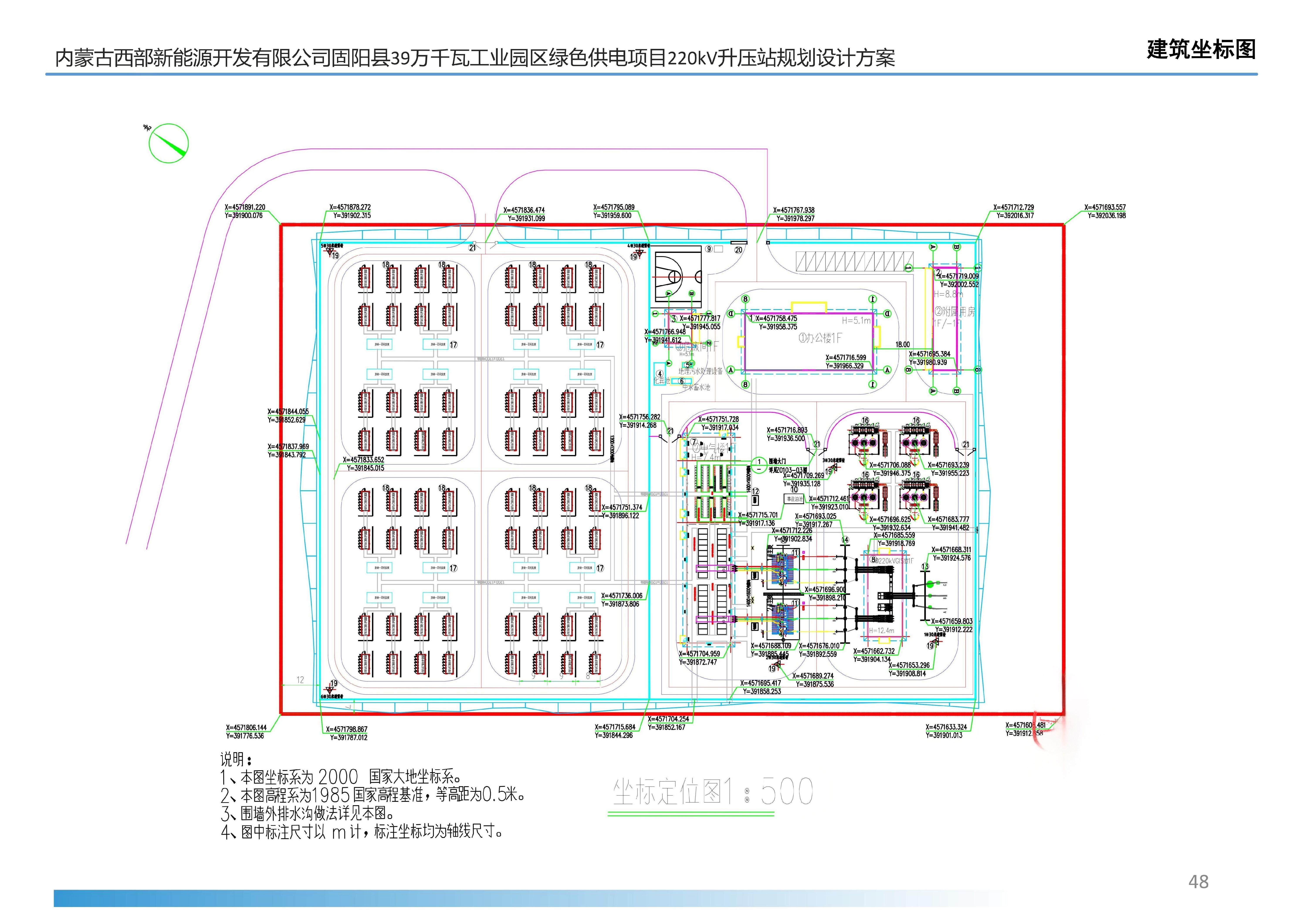 附图:1.内蒙古西部新能源开发有限公司固阳县39万千瓦工业园区绿色供电项目220kV升压站规划设计方案变更后总平面图