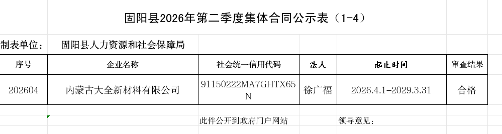 固阳县2026年第二季度集体合同公示表(1-4)