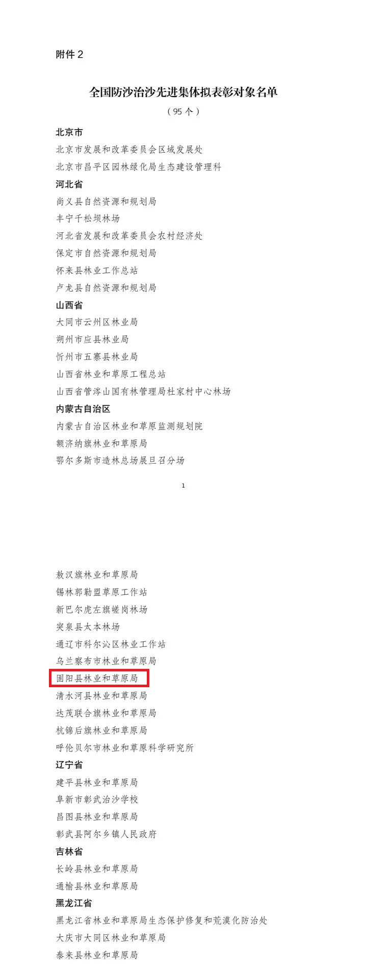 防沙治沙先进集体和先进个人拟表彰名单的公示》,