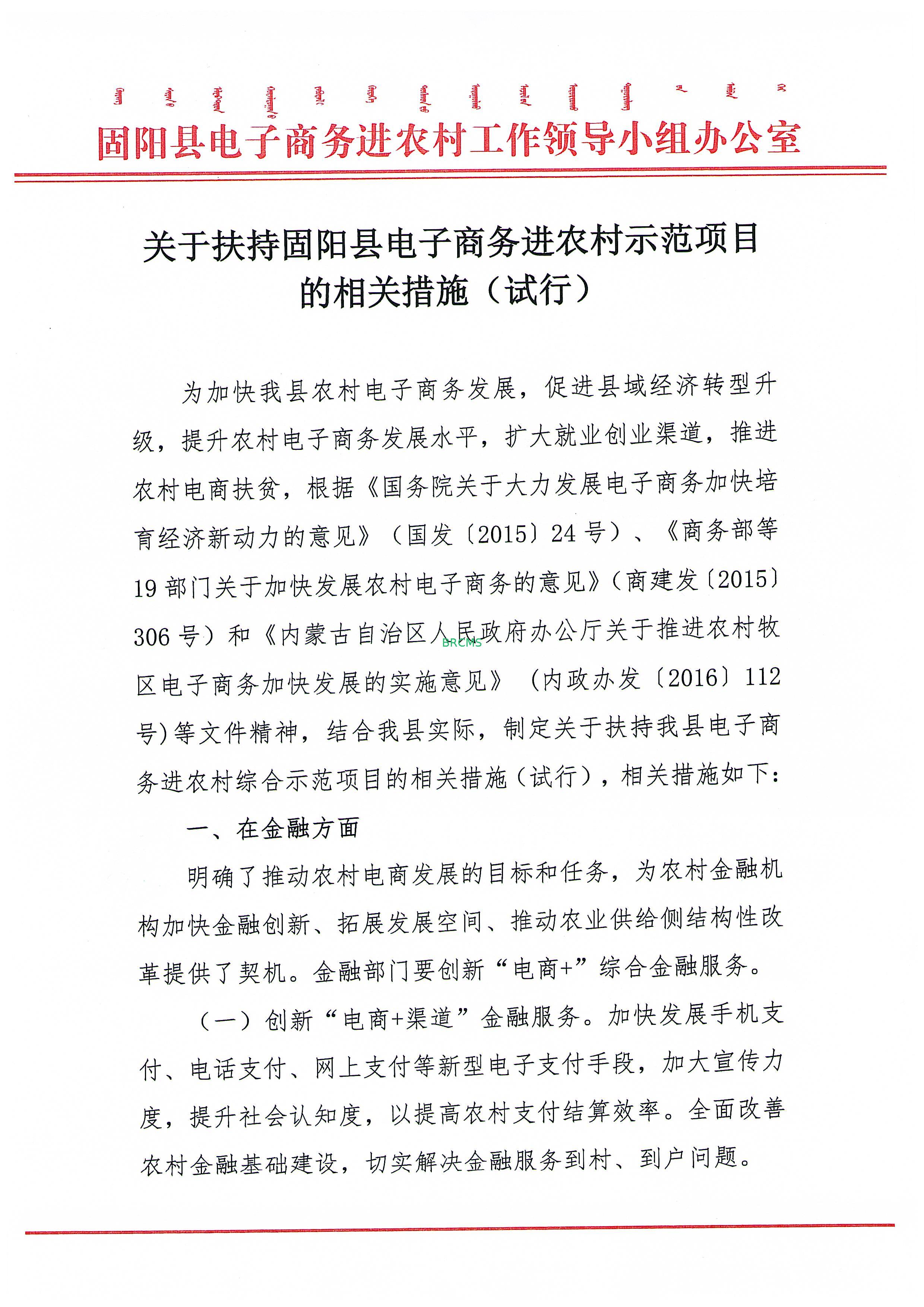 关于扶持固阳县电子商务进农村示范项目的相关措施(试行)