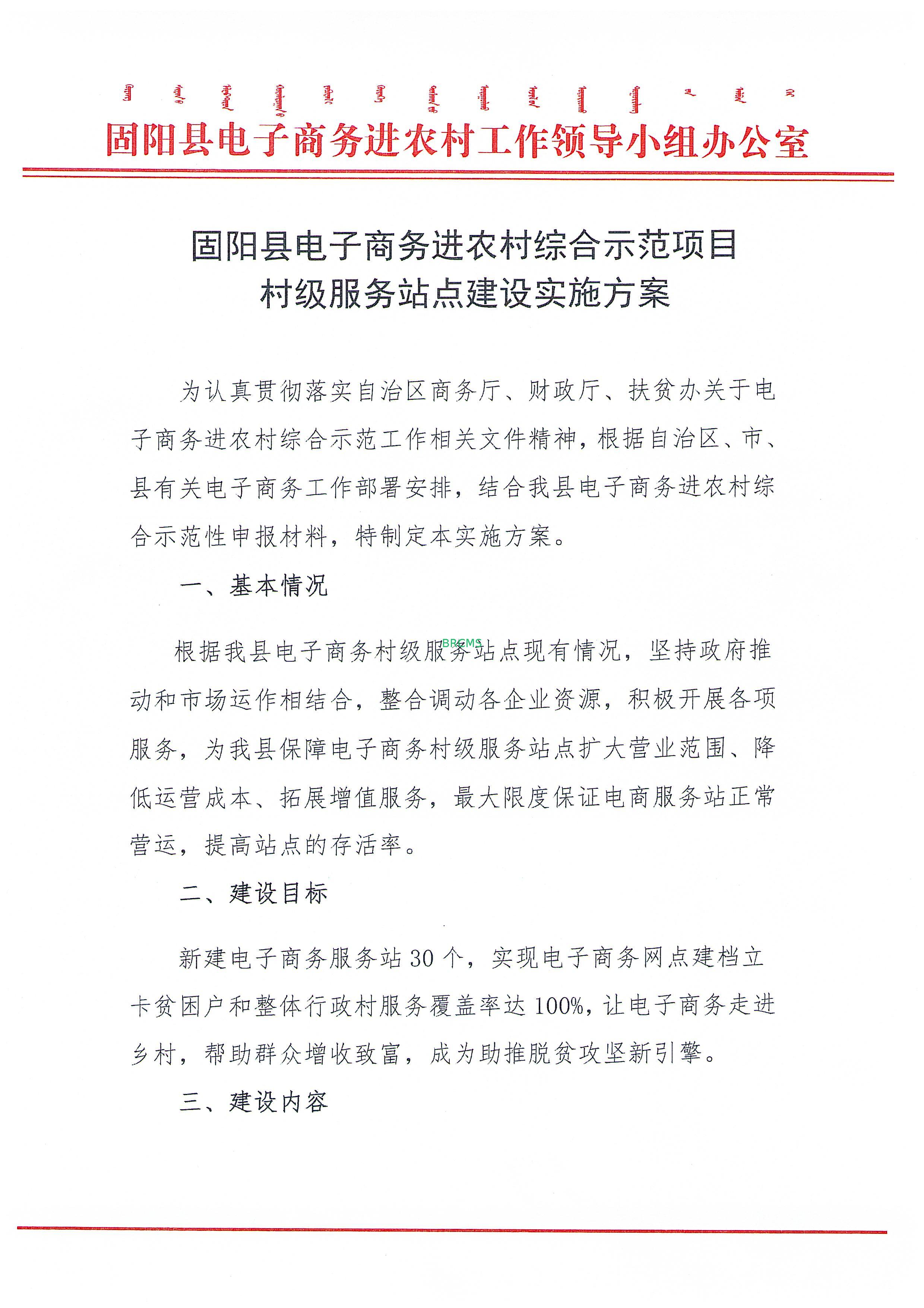 固阳县电子商务进农村综合示范项目村级服务站点建设实施方案