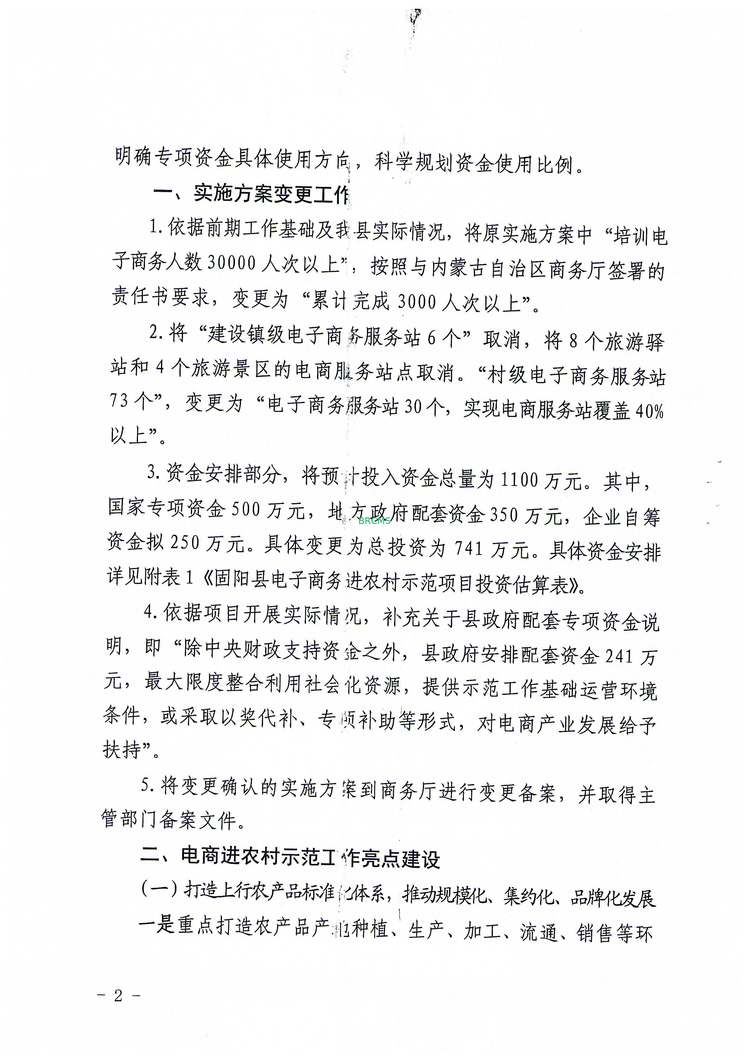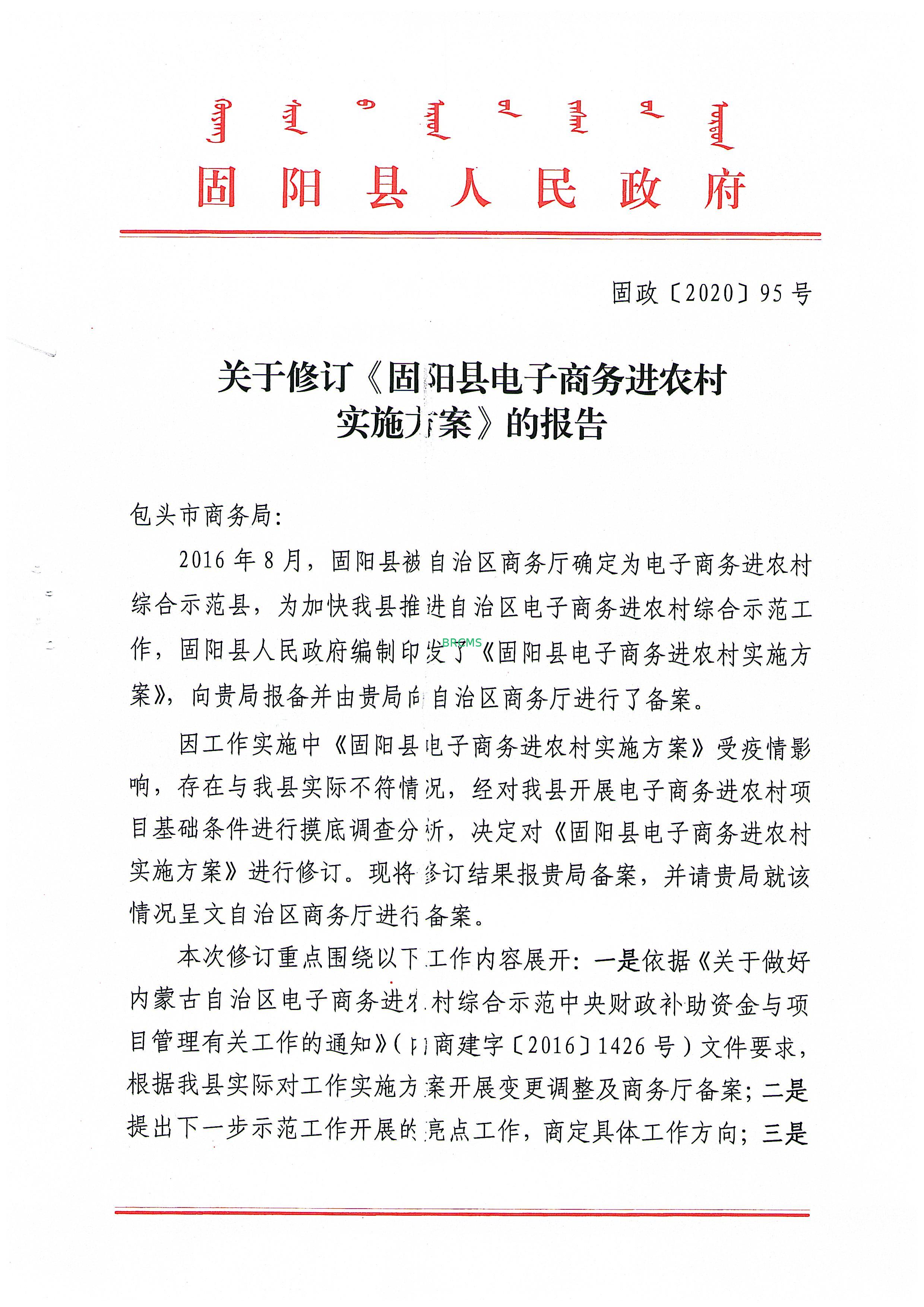 关于修订《固阳县电子商务进农村实施方案》的报告