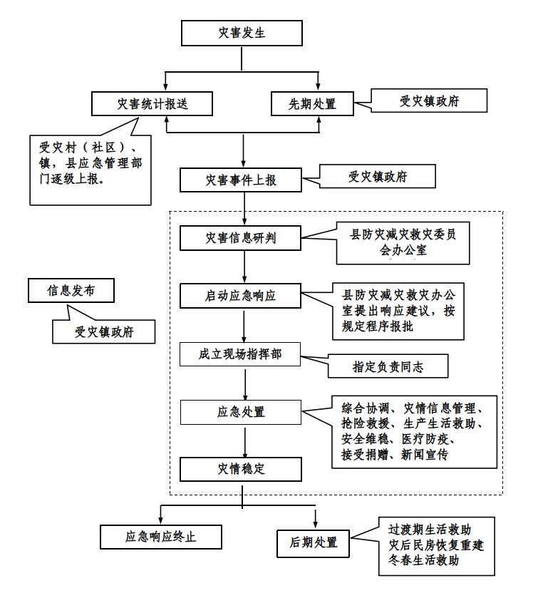 (3)汇总统计灾情。县减灾委办公室及时掌握灾情和救灾工作动态信息,按照有关规定统一发布灾情和受灾地区需求。相关成员单位共享信息,每日向县减灾委办公室报告有关情况。必要时,县减灾委会同专家开展灾情发展趋势及受灾地区需求评估。