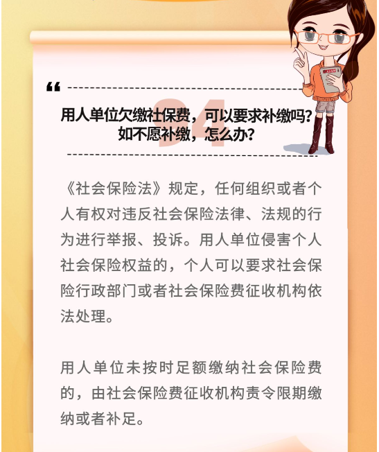 • 用人单位欠缴社保费,可以要求补缴吗?如不愿补缴,怎么办?