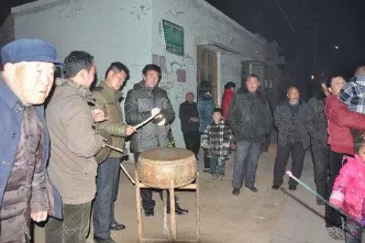 每到一家,那些会唱的老人、年轻人,自我搭配,2人一组组成搭档。在旺火的映衬下,每次出场2组4人,他们分别站在四角,在锣鼓点的配合下,对角的两人迎面绕着8字转场,边转边唱,一组唱罢另一组上场交替进行。唱词多是成套的吉祥话儿。最有意思的是,有些奇才唱手,往往会根据主人家的情况或长相特点,现编现唱,诙谐幽默。