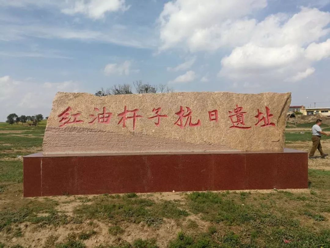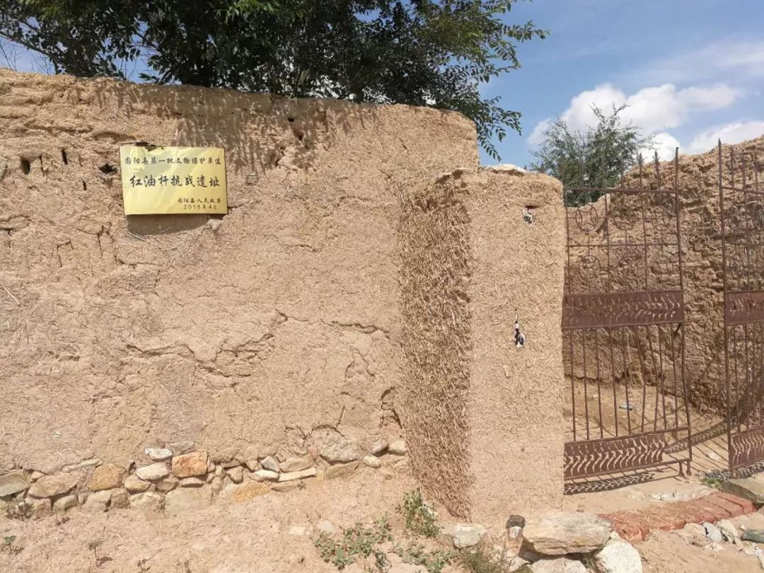红油杆子距离固阳县城北约三十公里许,隶属于兴顺西镇。村子坐落在平摊开阔处,由东向西一字排开,坐北向南。举目远眺,周围地势平坦通达,前面是连绵起伏的丘陵地带,后面是一望无际的蒙古高原。眼前是村里人新建的砖瓦房,两处土房土墙的大院参差错落在新建的砖瓦房中,历经风雨的侵蚀,已是残垣断壁,东北抗日挺进军的马占山总司令和刘桂五师长就分别驻扎在这两处大院里,现为抗日战争遗址。