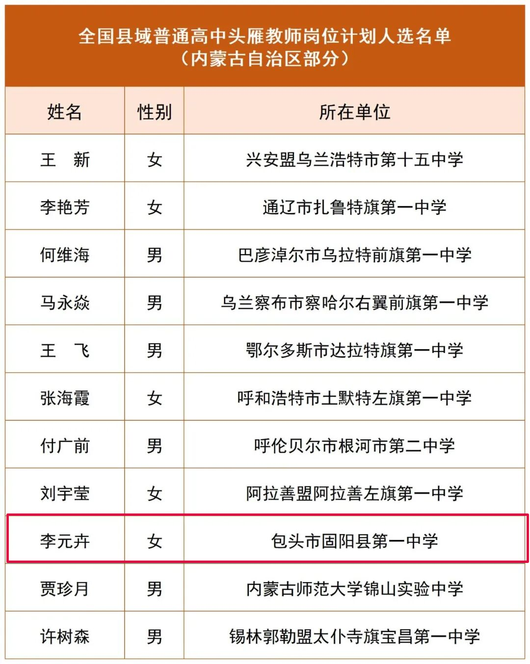 喜报!固阳县1名教师入选国家级“头雁教师”,...