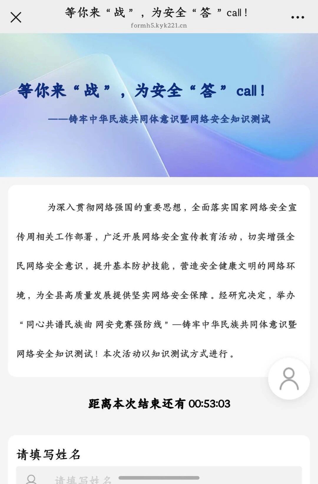 与此同时,“同心共谱民族曲 网安知识强防线”——铸牢中华民族共同体意识暨网络安全知识测试也在多彩固阳微信公众号正式启动。测试题库涵盖党的二十届三中全会、党的民族理论政策、网络安全法律法规等内容,吸引了众多群众积极参与,进一步增强了大家对网络安全重要性的认识。