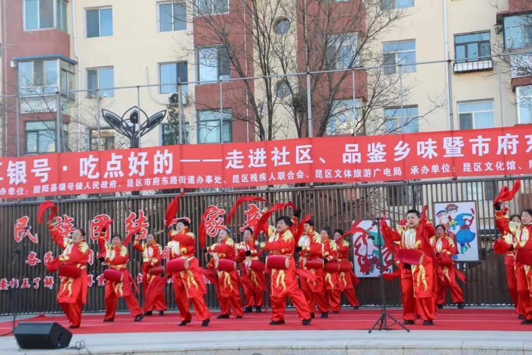 热腾腾的猪肉烩酸菜、金黄酥脆的炸油饼、手擀现包的冬至饺子、暖胃养生的黄芪茶……12月21日上午,昆都仑区市府东路街道阿尔丁1号街坊广场上热气蒸腾、乡音缭绕,由固阳县银号镇与昆区市府东路街道等单位共同发起的“畅享银号·吃点好的——走进社区、品鉴乡味暨市府东路街道第二届年货展”活动在这里拉开帷幕。