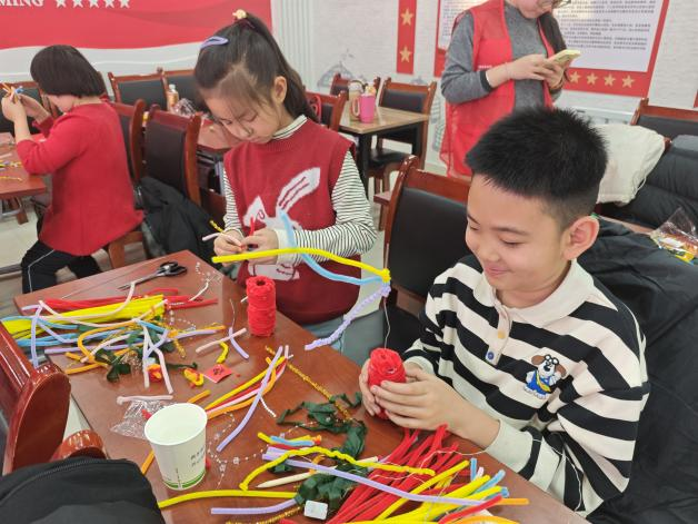 支农社区“爱伴同行”假期托管班聚焦实践能力与传统文化培养,推出了一系列特色手工活动。“甜蜜烘焙 快乐成长”蛋糕DIY活动中,孩子们在专业糕点师与志愿者的指导下,亲手制作出专属创意蛋糕,在劳动中体会成就感与分享的快乐;“巧手做‘爆竹’环保贺新年”扭扭棒鞭炮DIY活动,让孩子们用环保材料创意制作新年装饰。