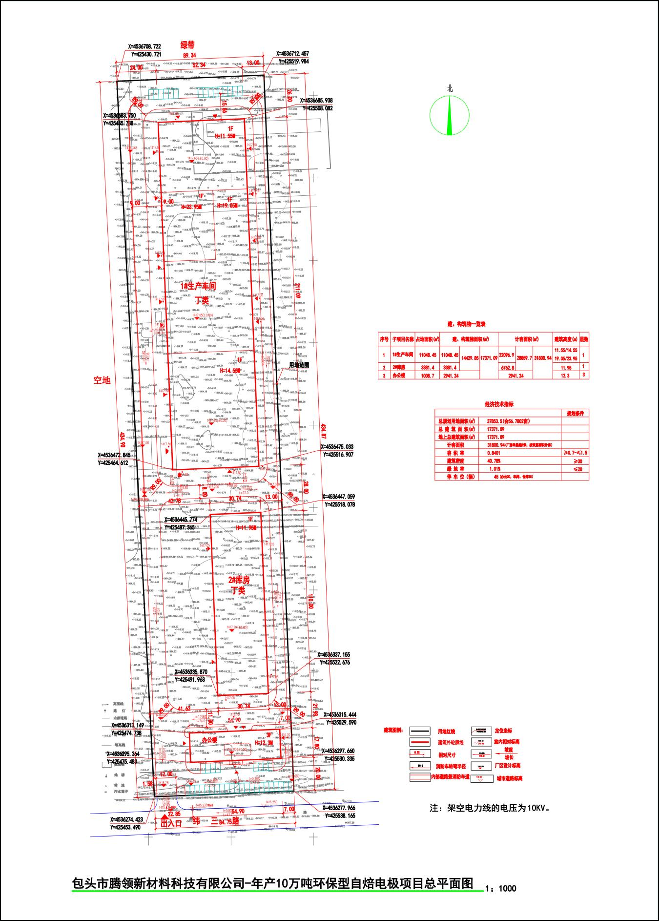 三、包头市腾领新材料科技有限公司年产10万吨环保型自焙电极项目总平面图。