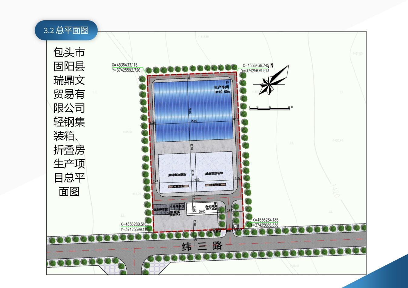 一、包头市固阳县瑞鼎文贸易有限公司轻钢集装箱、折叠房生产项目总平面图;
