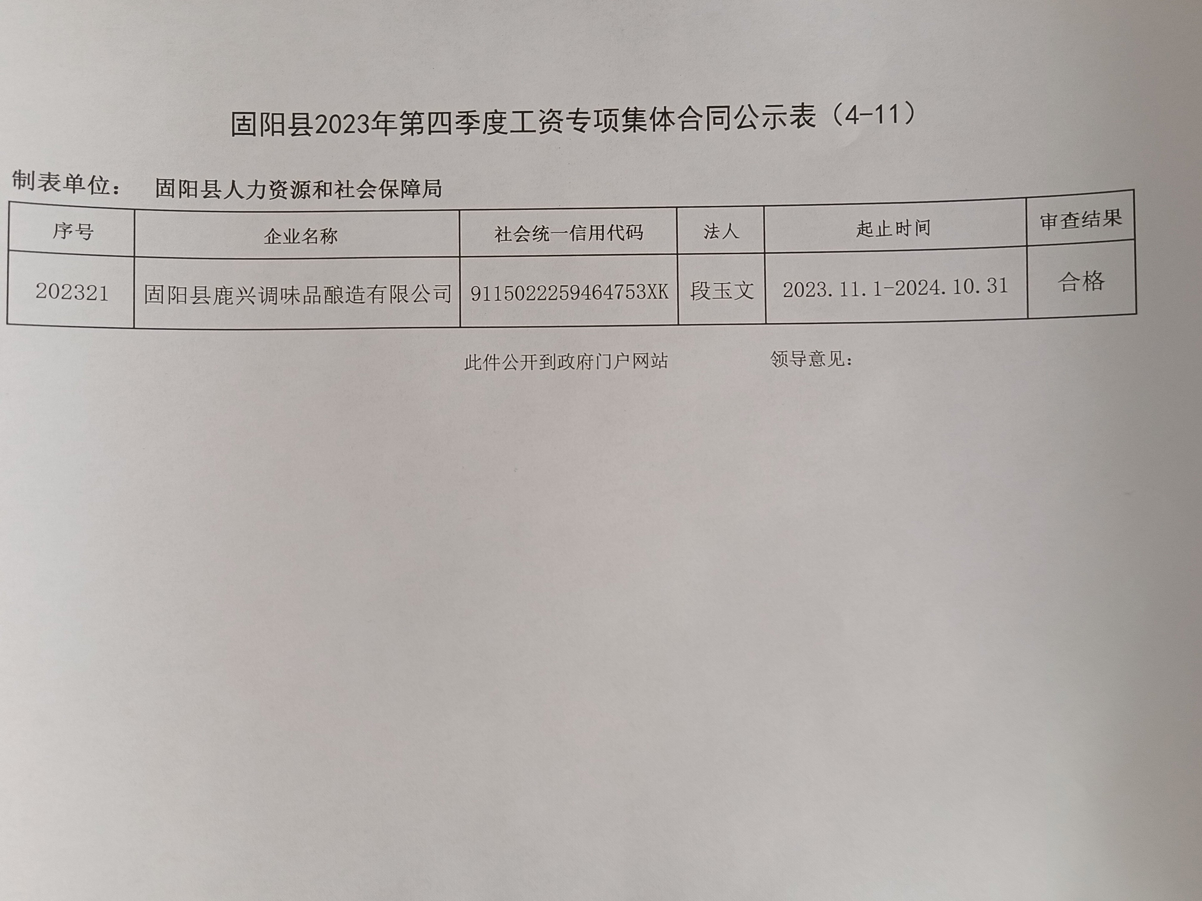 固阳县2023年第四季度集体合同公示表(4-11)