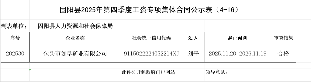 固阳县2025年第四季度工资专项集体合同公示表(4-16)