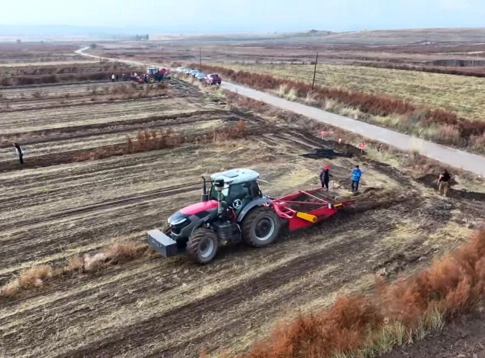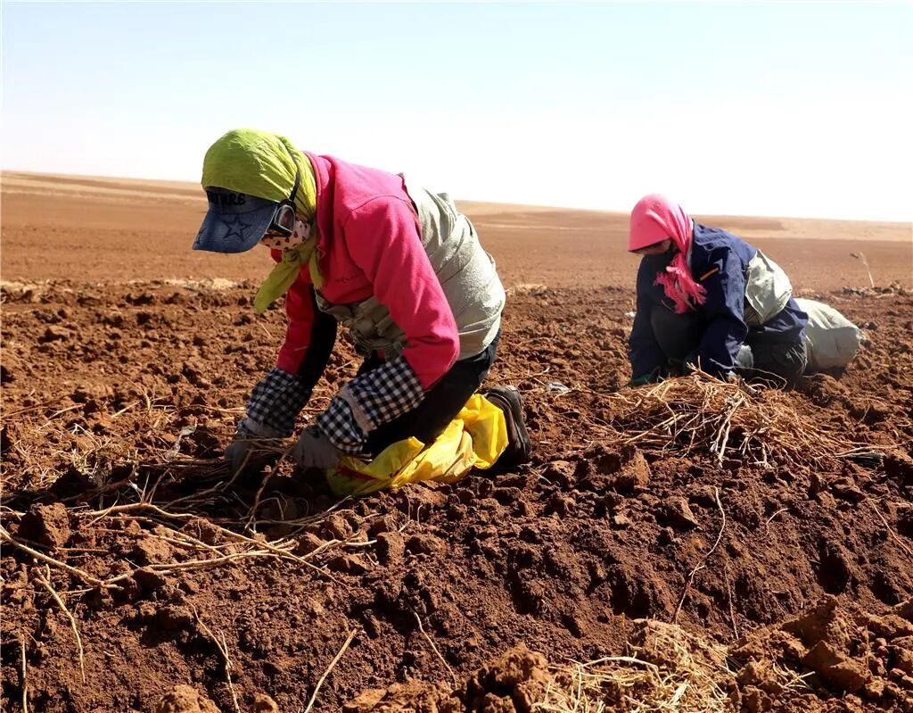 收割机在广袤的田垄间来回穿梭,犁铡过后,一株株主根粗壮、侧根繁密的黄芪破土而出,展现出蓄积了一整年的丰饶。