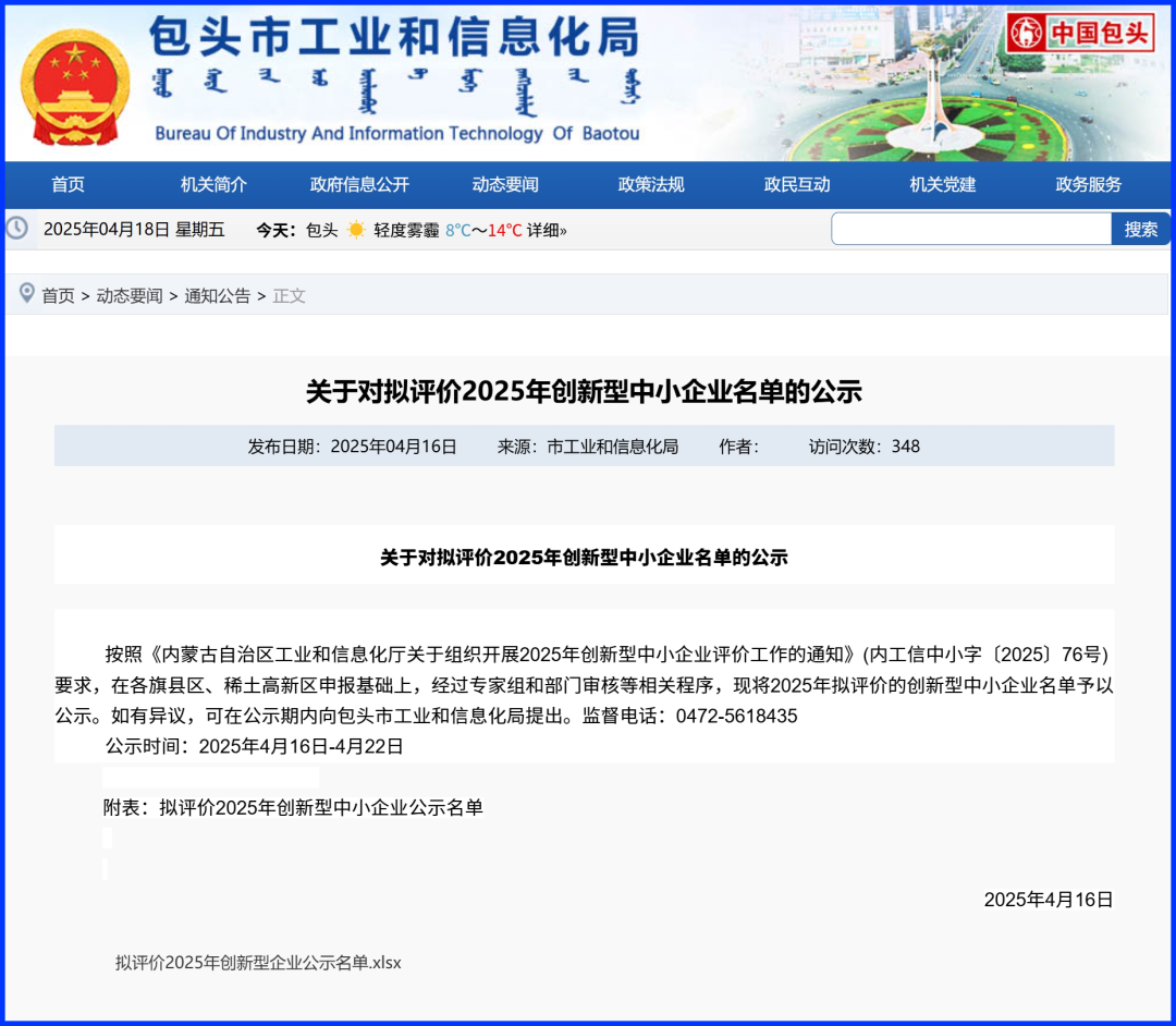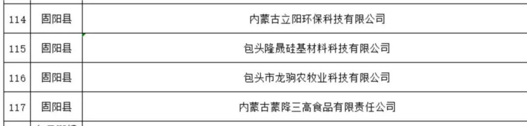 近日,内蒙古自治区工业和信息化厅发布了2025年拟评价的创新型中小企业名单,固阳县共4家企业成功入选(内蒙古立阳环保科技有限公司、包头隆晟硅基材料科技有限公司、包头市龙驹农牧业科技有限公司、内蒙古蒙降三高食品有限责任公司),目前固阳县已累计培育11家自治区级创新型中小企业。