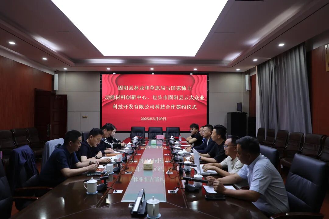5月29日,固阳县林业和草原局、国家稀土功能材料创新中心、包头市固阳县云太众业科技开发有限公司举行合作签约仪式。