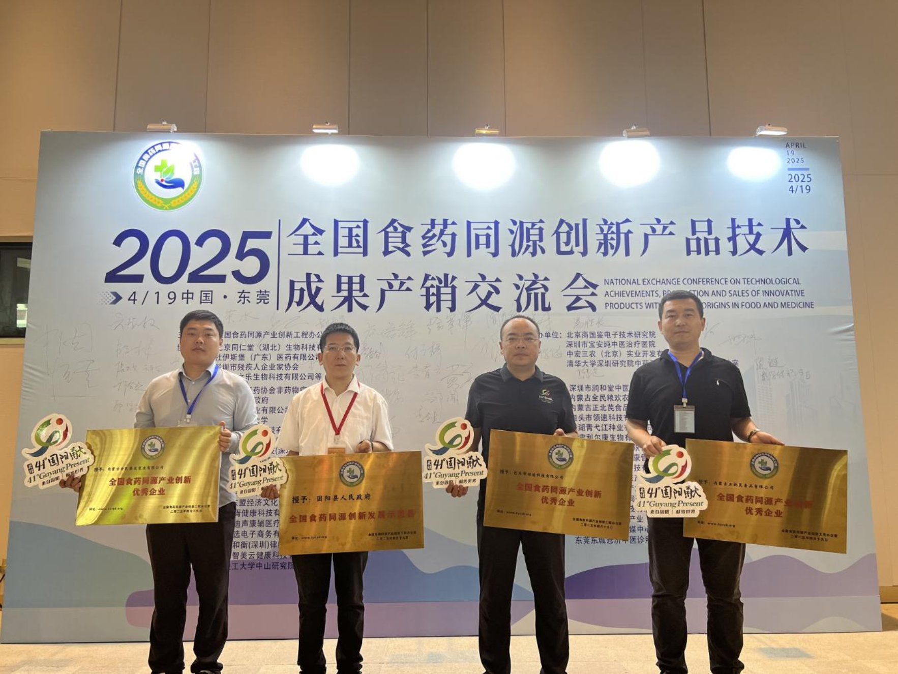 4月19日,在东莞举办的“全国食药同源创新成果交流会”上,固阳县凭借其在食药同源领域的创新实践与突出成效,成为会议唯一一个获得“全国食药同源创新发展示范县”称号的县域。同时,内蒙古全民粮欢农业有限公司、内蒙古正北芪食品有限公司、包头市领速科技有限公司3家“41°固阳献”授权企业荣获“全国食药同源优秀企业奖”,标志着固阳县在农业品牌化与产业融合发展的道路上迈上新台阶。