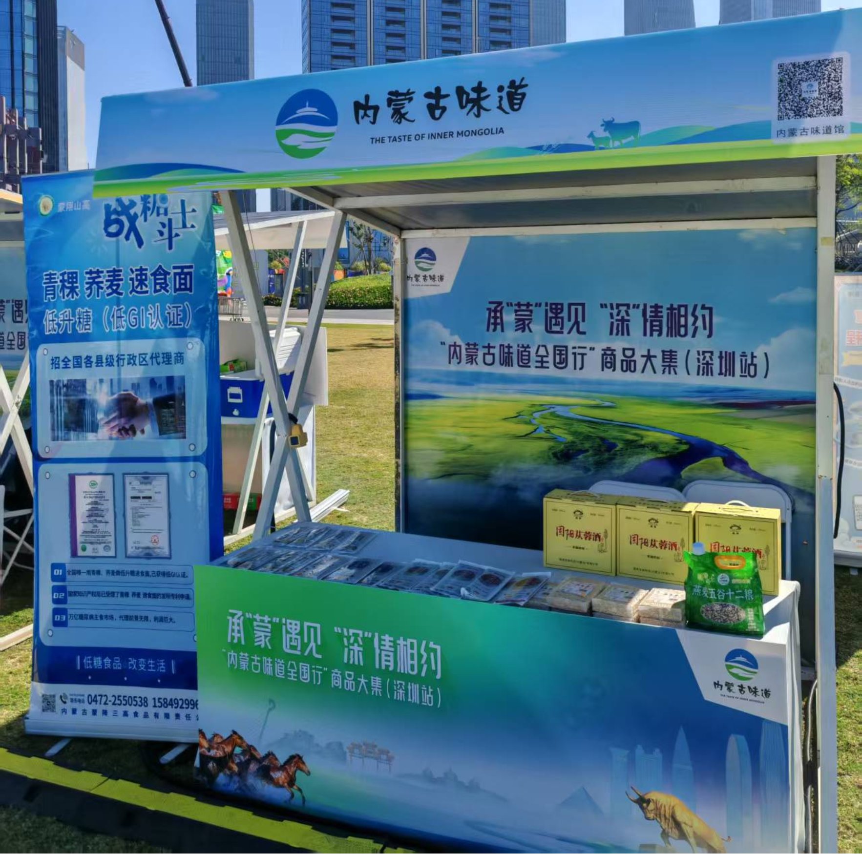 继广州活动圆满落幕,11月28日至30日,固阳县转战深圳参与“歌游内蒙古鸿雁展鹏城”嘉年华活动。在前海石公园好物市集,固阳展位延续热度,集中展示优质农畜产品与文创衍生品,让湾区市民近距离感受北疆文化与固阳特色的碰撞。