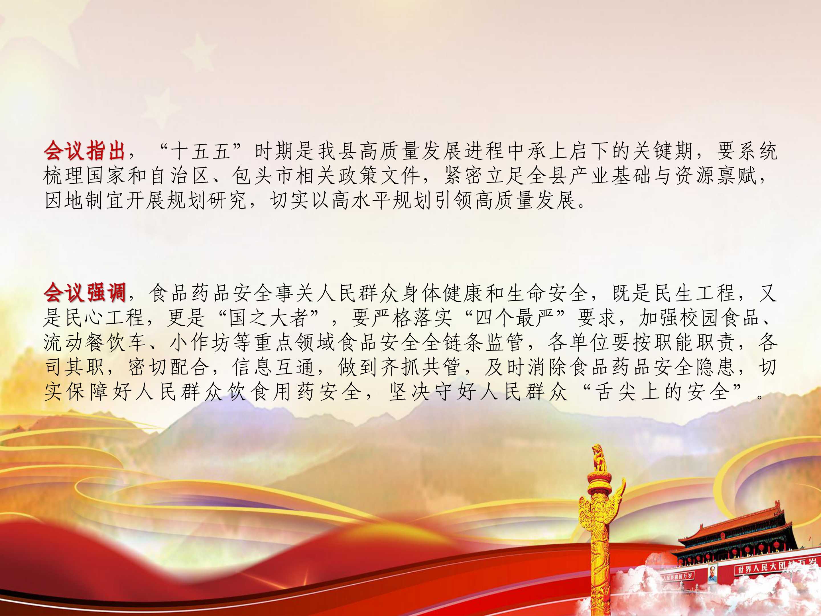 会议指出,“十五五”时期是我县高质量发展进程中承上启下的关键期,要系统梳理国家和自治区、包头市相关政策文件,紧密立足全县产业基础与资源禀赋,因地制宜开展规划研究,切实以高水平规划引领高质量发展。