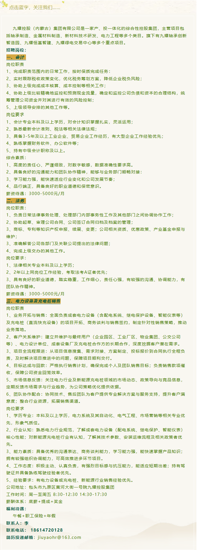 【招聘信息】九耀控股(内蒙古)集团有限公司