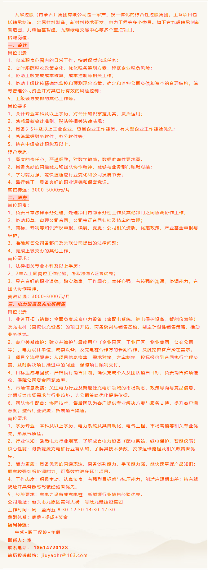 【招聘信息】九耀控股(内蒙古)集团有限公司