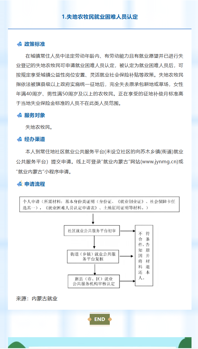 【政策解读】内蒙古自治区促进农牧民创业就业政策服务清单|1.失地农牧民就业困难人员认定