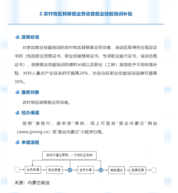 【政策解读】内蒙古自治区促进农牧民创业就业政策服务清单|2.农村牧区转移就业劳动者就业技能培训补贴