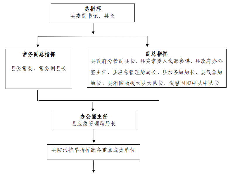 县防指设总指挥1名、常务副总指挥1名,副总指挥若干名,成员由县相关部门单位负责同志担任。各成员单位在县防指的领导下,按照职责开展防汛抗旱工作,及时提出加强和改进防汛抗旱工作的意见建议。县防指组成人员的调整按照县委和县政府有关规定执行。